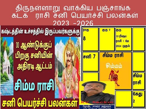 திருநள்ளாறு சனீஸ்வர பகவான் வாக்கிய பஞ்சாங்கத்தின் அடிப்படையில், வருகின்ற